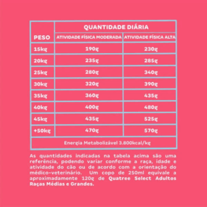 Ração Seca Quatree Select Frango e Arroz Cães Adultos Raças Médias e Grandes é um alimento Premium Especial feito com ingredientes naturais para uma dieta nutritiva e manutenção da saúde. Sua fórmula com batata doce e proteínas de alto valor biológico, fornece energia e auxilia no desempenho do organismo. É de fácil digestão e possui componentes que contribuem em todo o processo digestivo do pet: o hexametafosfato de sódio promove a saúde oral, controlando o tártaro e reduzindo o mau hálito, já a presença de prebiótico, yucca e zeólita diminui o volume e odor das fezes. Conta ainda com ômegas 3 e 6, essenciais para a saúde da pele e beleza dos pelos, glicosamina e condroitina que auxiliam no cuidado das articulações do animal.
